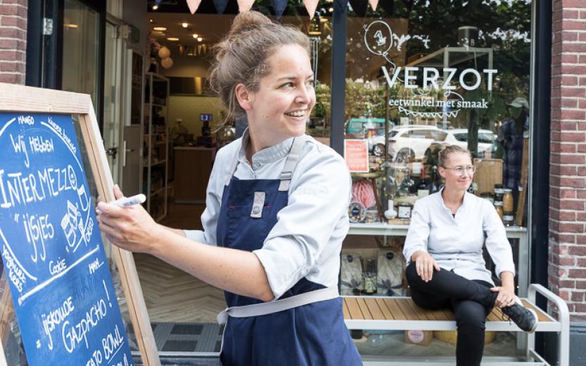 Met het openen van Eetwinkel Verzot, in een authentiek pandje op het Besterdplein in Tilburg, ging ruim een jaar geleden een lang gekoesterde wens in vervulling. Mensen vinden hier versbereide afhaalmaaltijden, baguettes met kazen, diverse delicatessen en smaakvolle geschenken.